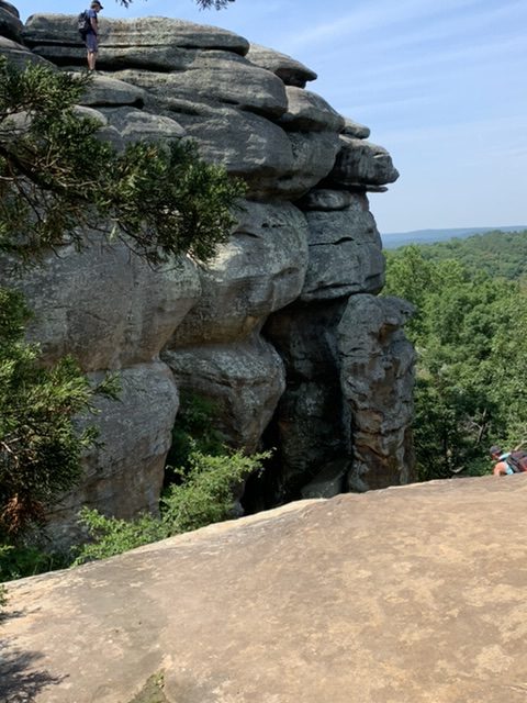 He dropped me off and I went on a short hike through the beautiful rock formations there at Shawnee National Forest. Then I started to bike out of the hills. My chain had fallen off somewhere in the process of getting here. As I biked through the hills to leave the park my chain came off four different times. By the time I got to the main road I was aware there was a bigger problem going on. I figured it was the cables because that’s what it always seemed to be. So I got an icee from the general store (The general store was filled with Bigfoot souvenirs. I never thought of Illinois as Bigfoot country) and spent about an hour trying to resolve the problem