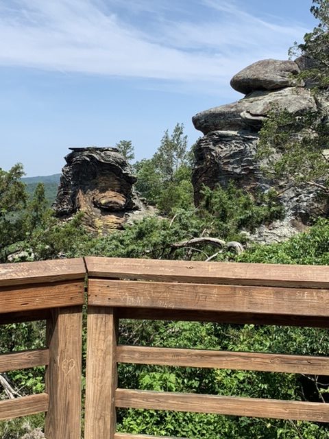 The owner, Tim, let me put my water bottles in the freezer for the next scorcher, and the next morning offered to drive me past the gravel roads out of town. He wound up driving me into Old Shawnee Town to see a Lewis and Clark historic marker and then offered to drive me all the way to Garden of the Gods. I wasn’t going to say no to that. After such a hot day, I was excited to have a shorter ride.
