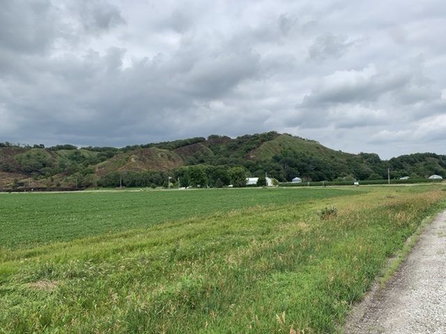 I crossed the river and set foot in Iowa for the first time, enjoying the slight change in scenery, very lush green bluffs, occasionally with a chunk missing that revealed a shock of red soil. There were technically towns on this ride, but the first few I passed through had been ravaged by a tornado recently enough that many of the houses had hardly been repaired. The first of these I came to, I followed a gravel road that google maps claimed would lead me to town. The gravel turned to dirt, and the dirt turned to a mound of dirt and nothing. Looking back, I think a bridge might have been taken out by the tornado.