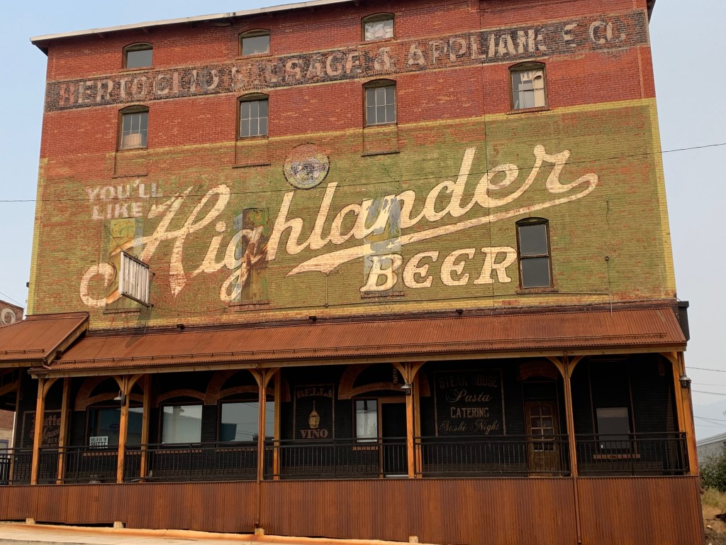 We had fun exploring that morning, then headed toward Butte, mostly because I was dying for a shirt that says “Ain’t She a Butte.” There was also a brothel museum up there I was curious about. That was closed and we had no success finding that shirt. My mom didn’t particularly want to go to the mining museum and I didn’t want to force her, but she was intrigued by the painted advertisements on the sides of buildings, so I decided to make my own fun and find as many of them as possible before we headed back to Dillon.