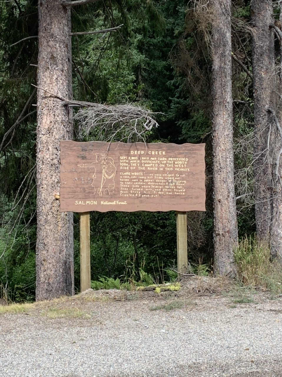 The mountainside was so steep in places I didn’t feel so worried about bears. There weren’t a lot of places to hide on those sheer drops, but after them there would be a crevasse filled with berry bushes and I would jump back to high alert. Because of this, and because the road was populated, unlike the Lemhi Pass, I felt I could stop this time and take pictures. There were even the occasional historical markers I love to see. Finally I reached the top. Again there was a road closure due to fire vehicle traffic, but this time it wasn’t the road I was taking. I got to enjoy the downhill. We were back in Montana.
