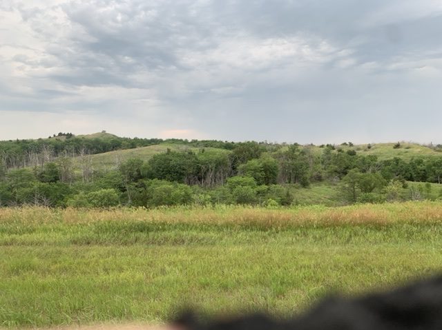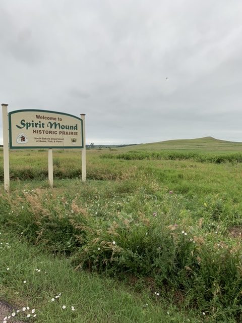 My motel room was on the second floor. Once again it was tough to find a place online. I wound up only able to book one night. It said it was the last room available and that it wasn’t available the next night. I got the room anyway, figuring I’d troubleshoot the next night when I got there. Well, I got there and the staff told me it was no problem to add another night, that I just needed to check out and check back in in the morning. It poured that evening, as expected, but there was a lull the next morning before it began. I got up as early as I could given how dark my hotel room was, secured my room for that night, and biked to Spirit Mound, a mound north of Vermillion that the plains tribes said was the home of dangerous spirits. Lewis and Clark brought a party to investigate the mound in August 1804.