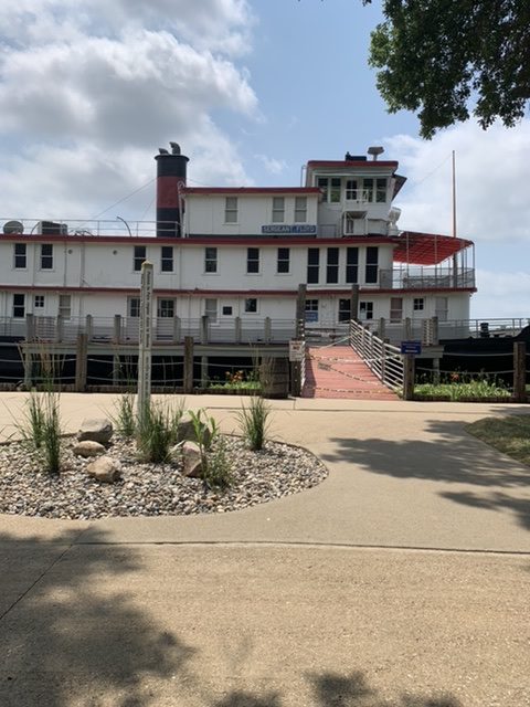 Next to the Lewis and Clark Interpretive Center, connected by a paved bike path was the Charles Floyd Riverboat Museum. Riverboat Museums seem to be a thing on our country’s major rivers. There was a Riverboat Museum in Marietta OH, then in Brownsville, NE there was a boat called the Meriwether Lewis Dredge. A dredge clears out deposits on the bottom of the river to make the river more navigable. This dredge was normally a museum, but was undergoing renovation as it had been badly damaged during, you guessed it! The flood of 2019.