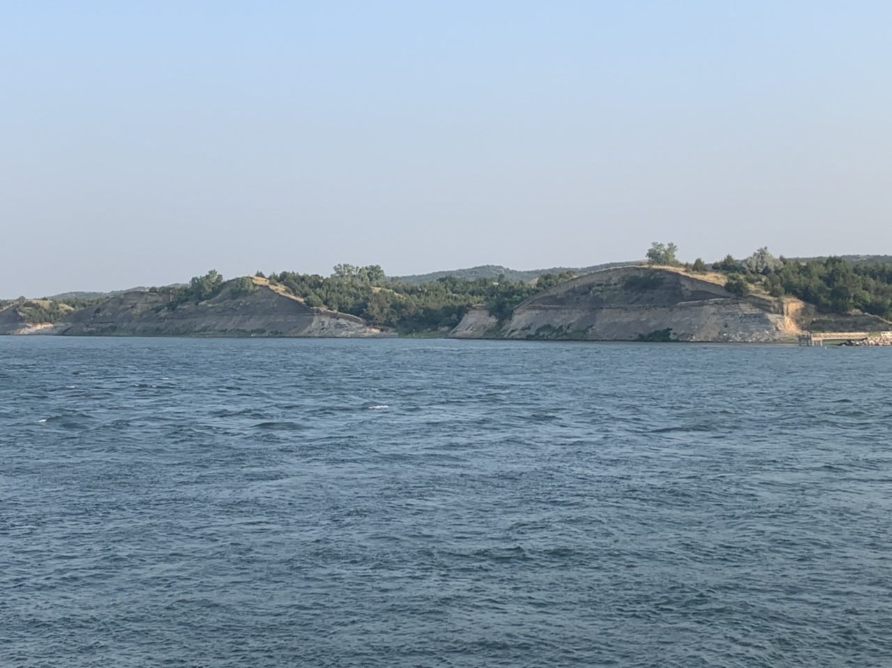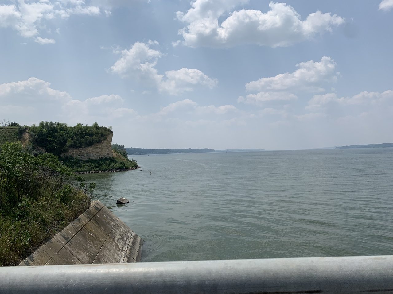 After a day off due to pouring rain, I got back on the road and continued west along the Missouri. By lunchtime I was in Yankton where I crossed over the Gavin’s Point Dam to visit the Army Corps of Engineers Lewis and Clark Visitor Center on the other side, my last stop in Nebraska. A woman at the visitor center back in Sioux City implied that I shouldn’t miss it. I hadn’t planned on stopping there, but I pushed myself. It was a bit of a letdown. At least I learned that Army Corps of Engineers tended to be primarily about dams and wildlife, so I curbed my expectations in the future. I did, however, get my first view of Lewis and Clark Lake and I fell in love. It was gorgeous! I could see golden bluffs topped with lush, green trees. I biked down the entire length of it, a large portion of which was paved bike paths in the Lewis and Clark Recreation Area. I later told my parents, I could have pitched my tent there and never left. I saw so many people swimming, kayaking, boating, and fishing and felt myself seethe with jealousy. I was so tempted to stop there for the night, and in retrospect I wish I had.