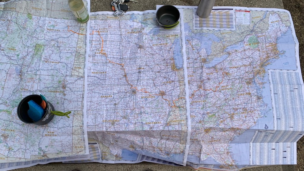 Second, I neglected to mention about my time with my Dad in South Dakota and North Dakota. First, The day I met up with my dad as I was rushing to Chamberlain, SD I ran into the only other person I’ve seen biking the Lewis and Clark Trail in the nearly 3k miles I’ve biked. He is still the only person I’ve seen to this day. He was biking west to east and had his wife riding along as a support vehicle.
