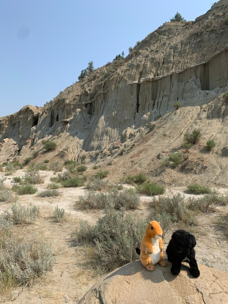 We got there shortly after the bike shop opened. Medora is just outside of Teddy Roosevelt National Park and it has the old west kitsch vibe that towns outside of Yellowstone have. We spent the morning window shopping in souvenir stores. I really wanted a shirt that said “Ain’t She a Butte” I had no luck. I did, however, fall in love. Now, if you’ve been reading this blog since the beginning, you know about my travel mascot, Sea (named for Meriwether Lewis’s dog, Seaman). My prairie dog obsession is also well established. Well, one shop had large prairie dog stuffed animals that were so flipping soft. I generally try to curb my gut reactions when shopping by leaving the store. If I forget about the item then I wasn’t meant to have it, but I saw this little guy that morning and came back in the afternoon, my need not diminished. So, I adopted Pomp, or Jean-Baptiste “Pompey” Charbonneau, named after Sacagawea’s son. His belly is just so darn cute. I’ve been away from my pet chinchilla, Pip for so long and I miss her belly something awful. This was softening the homesickness for my baby.