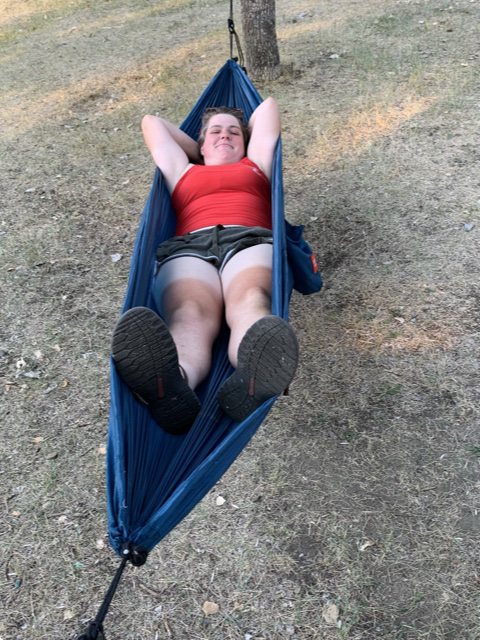 At this point, my mom was experiencing all the aches and pains one might imagine from sleeping in a Toyota Corolla for over a week. I felt we were spending too much money on hotels. I had a camping hammock, so I offered to attempt to sleep in that so my mom could sleep in a tent and see if that treated her any better. I put my sleeping pad in the hammock, got into my sleeping bag and delicately placed myself on top of it. My mom had to tuck me in. I had tulle with me from when my dad was with me. I’d recommended it as a makeshift mosquito net so he could sleep with the windows of his rental car open at night. My mom tucked it over me like a burial shawl. I didn’t sleep great. Just because of where the trees were convenient, I was woken up every time a car came down the road to blaring headlights in my eyes. I was also conscious that I might wake up to a deer sniffing me. I knew this solution wouldn’t work forever. As soon as we got into bear country I wouldn’t be safe in a hammock, but we discussed that maybe investing in a tent that would fit both of us would be worthwhile.