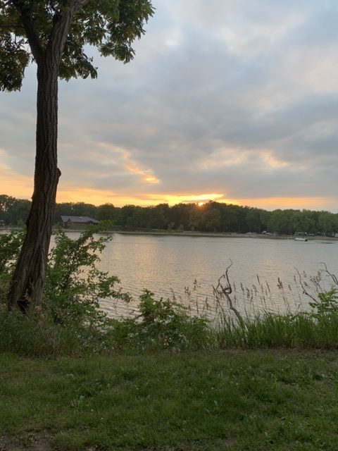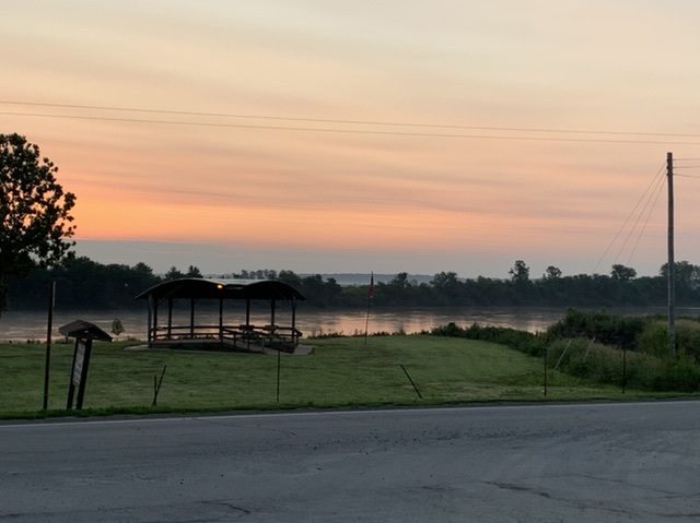 I may have jumped the gun a bit when I scheduled my campground that night. I saw there was a KOA near my route and reserved a site on Lake Lewis and Clark (beware, there are many Lake Lewis and Clarks on this trip. When I inevitably mention one again, it will be a different one in another state). This lake is an oxbow, which means it was at one time a bend in the Missouri, but it got cut off from the rest of the river by probably, time, erosion and drought, and now it’s a lake the shape of a horseshoe. I did have wifi at the KOA though, and a campsite right on the water, which is always a pleasure. I could see the Lewis and Clark State Park Visitor Center from my camp. I wanted to go there, but I’d already biked more than 70 miles. That was an activity for the morning.