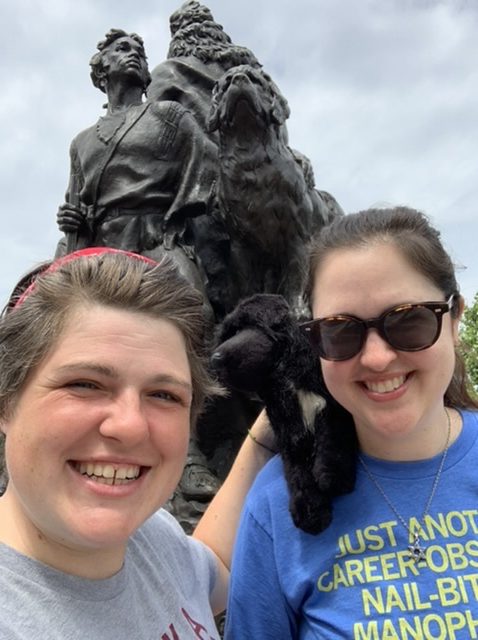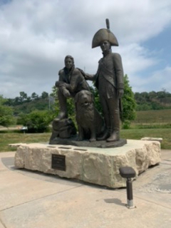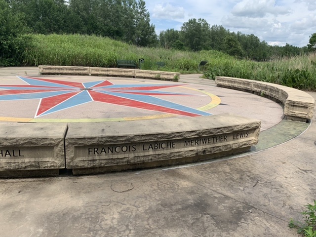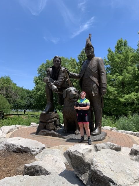 An animatronic Thomas Jefferson talked about the Louisiana Purchase and about Meriwether Lewis, another robotic Charles Floyd talked about himself and his death. Lewis and Clark had a conversation over Floyd’s grave. There was a section about a court martial that happened in the area, a section on Native American children’s games, and a 15-minute film of William Clark talking about his experiences on the expedition. Outside there was a garden with walking paths and statues of a number of different animals encountered on the trail. I got a good laugh because they had a Lewis and Clark (and Seaman) sculpture outside. It was the exact same sculpture I’d seen in Saint Charles, MO at the beginning of the Katy Trail, only smaller.