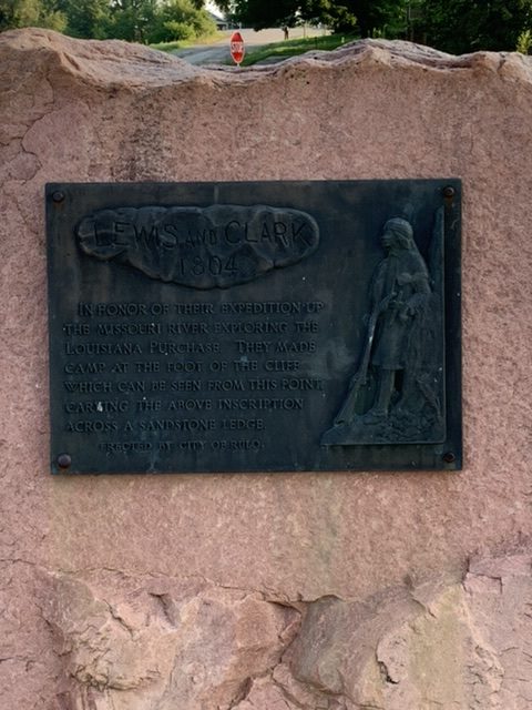 I trekked on to the southern edge of Sioux City and had a surprising amount of difficulty finding a hotel. That wound up being a theme. It rained again that night, and I was slow to get out of the city. There were a few tourist stops I was excited to see before I left, they opened later in the morning. First though, I went to Floyd’s Bluff. Charles Floyd was the only man on the entire expedition to die, and he died in what is now Sioux Falls, or rather, across the river from Sioux Falls. He was buried on a high bluff on the east side of the river, and Lewis and Clark named the bluff and nearby tributary after him. Those Loess Hills I’ve talked about are made up of an especially fine and fertile soil. They’re basically silt. If you’ve ever walked in a pond, a lake, or a riverbed and sunk into slime, that is what the hills are composed of, just not saturated with water. When they get saturated the land sloughs off and erodes into the river. That evidently happened to Floyd’s grave, so it was moved and eventually a stone obelisk was erected at the top of the bluff. I had thought about recording a video update for my blog at the monument, but when I got there the place had the peaceful serenity of a cemetery. I chose to wait.