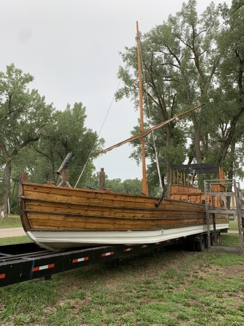 I stalled my departure the next morning just enough to get to the visitor center when it opened. It, like the Nebraska City Interpretive Center advertised a to scale replica of the keelboat. It turned out it had two! There was one on a trailer in the parking lot. I was a little disappointed that it was corded off and I couldn’t explore the deck. That said, I got a whole lot of pictures.