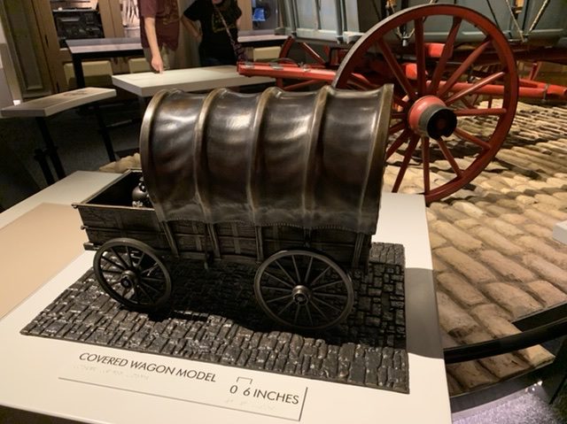 The displays lead me down a hall with a history of the Missouri River, interesting facts about boat travel, information about flooding. I learned about the phrase “eat up the lights” and was fascinated. When Steamboats went up the Missouri, sometimes they couldn’t get to a port before dark, so the pilot would send out his most trusted men in a rowboat and they would float candles with paper around them to shield them from the wind. They’d weigh them down with string and rocks to keep them in place. The candles showed safe paths through the minefield of the Missouri (sandbars and imbedded logs were a constant terror) and the steamboat would head straight for the lights. As it neared it pushed the candles under and the lights would be extinguished.