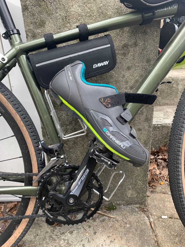 Now, don’t worry! I didn’t hurt myself. I went out on a ride, went to take my feet off the pedals, and only one foot came free. The other one was stuck. I was in a safe place and kept my balance, but I had to take off my shoe to free myself from the bike. With my foot out of the shoe I tried to wriggle it free, but it was not coming off. So, sitting on the asphalt in an unused parking lot on the bike path, I started googling the solution. The first few answers I found I didn’t like. Take off the pedal and put it in a vice grip. Nah. Not doing that. I don’t even own a vice grip.